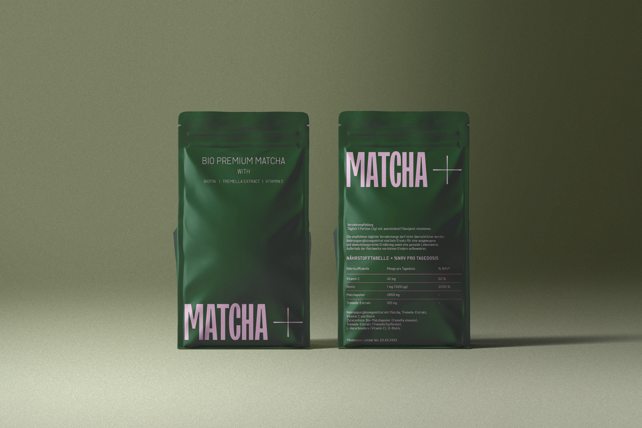 „Matcha+ vereint die Vorteile von Matcha wie sanfte Energie und antioxidativen Zellschutz mit den wichtigsten Wirkstoffen für deine Haut, Haare und Nägel sowie deine Gesundheit und allgemeines Wohlbefinden – Biotin, Vitamin C und Tremella-Pilz als pflanzliches Feuchtigkeitswunder.“